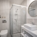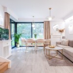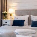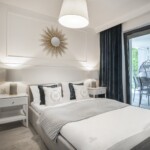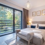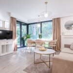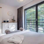 Połączenie eleganckiego złota i nadmorskich detali tworzą wyjątkowy wystrój domku Marine. Domek ma powierzchnię 90m2, składa się z dwóch pięter i przeznaczony jest dla maksymalnie 6 osób. Domek jest całoroczny, posiada centralne ogrzewanie. Na górnym tarasie o pow.23m2 znajduje się strefa chillout - jacuzzi z widokiem na las.